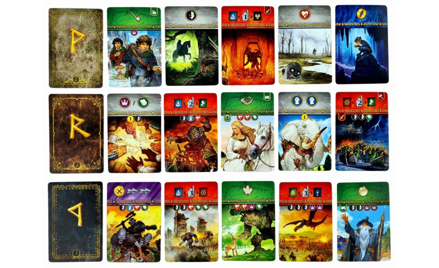 Játékmenet: A játékosok felváltva választanak középen elhelyezett kártyákat, és gyűjtik azokat saját készletükbe a győzelem érdekében. Külön Középfölde-térképen helyezheted le egységeket és tornyokat, miközben a gyűrűküldetés sávján Frodó és Samu előrehaladását követheted.