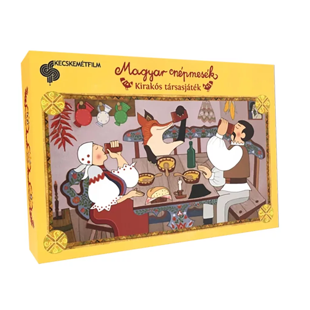 A Magyar Népmesék játékcsalád legújabb tagja a Kirakós társasjáték, amelyet bátran adhatunk óvodásoknak és kisiskolásoknak is. A gyerekek feladata egy gyönyörű, részletgazdag kép kirakása az összeillő darabokból. A jelenet a kultikus rajzfilmsorozat A szállást kérő róka című epizódjából származik, így a játék egyszerre nosztalgikus és ismerős.