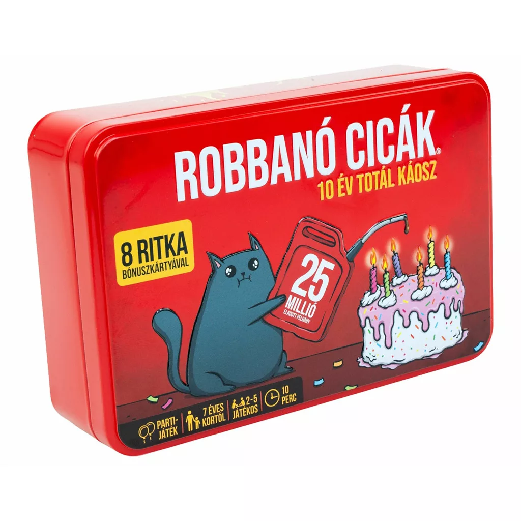 A Robbanó cicák egy pörgős, humorral teli, extrém partijáték. A játék során a résztvevők igyekeznek elkerülni, hogy robbanó cica kártyát húzzanak a pakliból. Ennek érdekében különféle ravasz taktikákat alkalmaznak: kártyákat lopnak egymástól, megakadályozzák mások lapjainak kijátszását, vagy a legjobb pillanatban újrakeverik a paklit.