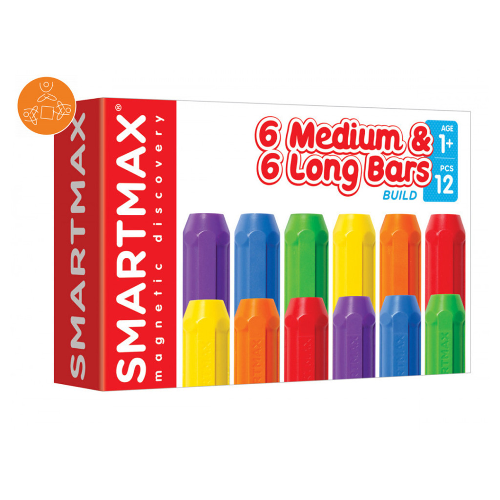 A darabok hatalmas méretének köszönhetően egészen kis kortól játszhatóak. Kiegésztő a Smartmax készletekhez. A készlet 6 db rövid és 6 db hosszú rudat tartalmaz.