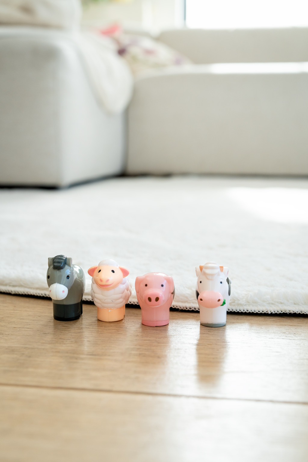 A készlet tartalma: 1 bárány, 1 tehén, 1 malac, 1 ló