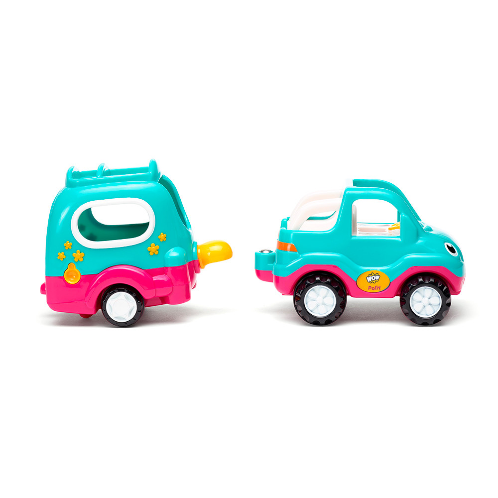 Polly, a póni kalandja egy motoros autó és egy levehető ló-szállító pótkocsi.