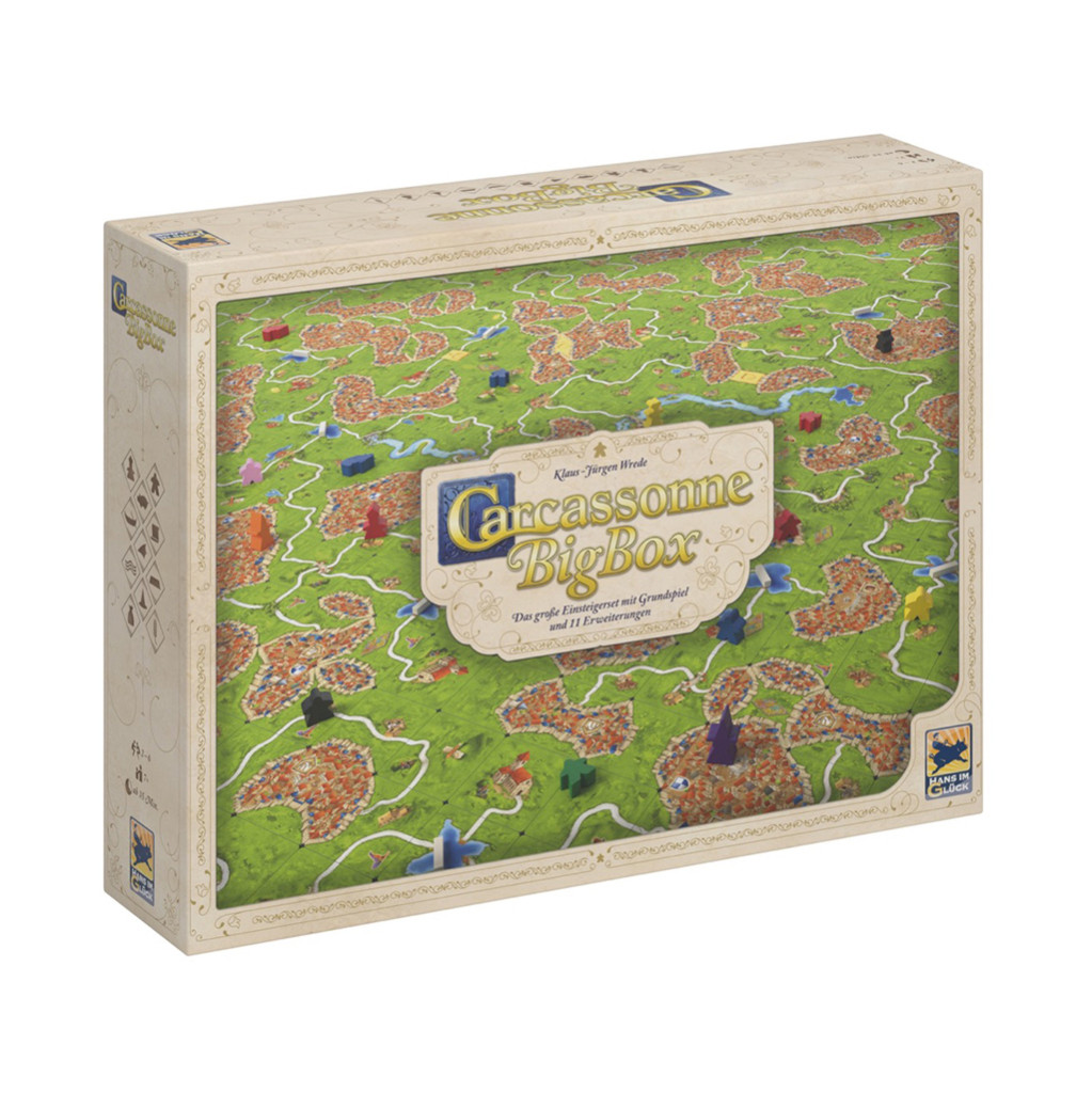 A Carcassonne Big Box (ami már a gyűjtemény 7. kiadása), az alap játék mellett 11 kiegészítőt tartalmaz.